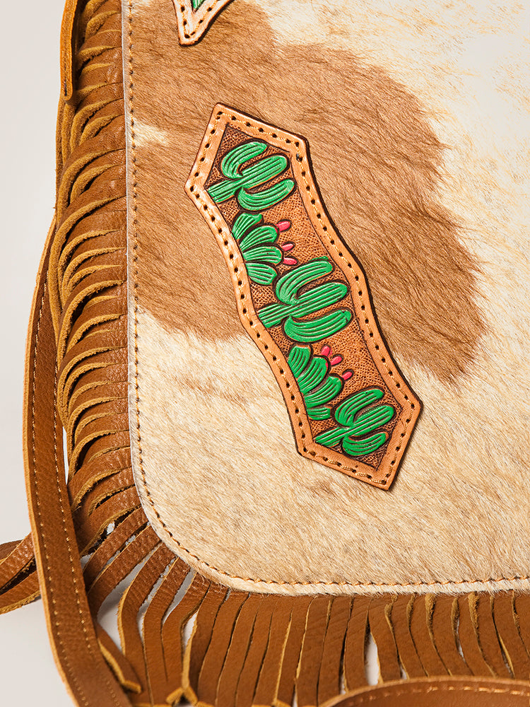 Elevate your Western wardrobe with this stunning Chaps Bag from American Darling. Crafted with rich hair-on hide and detailed hand-tooling, this compact bag is perfect for everyday adventures or nights out.