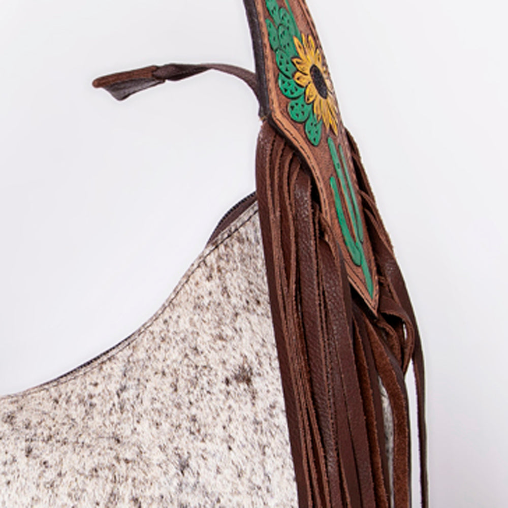 LC-ADBGA299 American Darling Hobo Bag Hair-On Leather with Floral Tooled Strap & Fringe