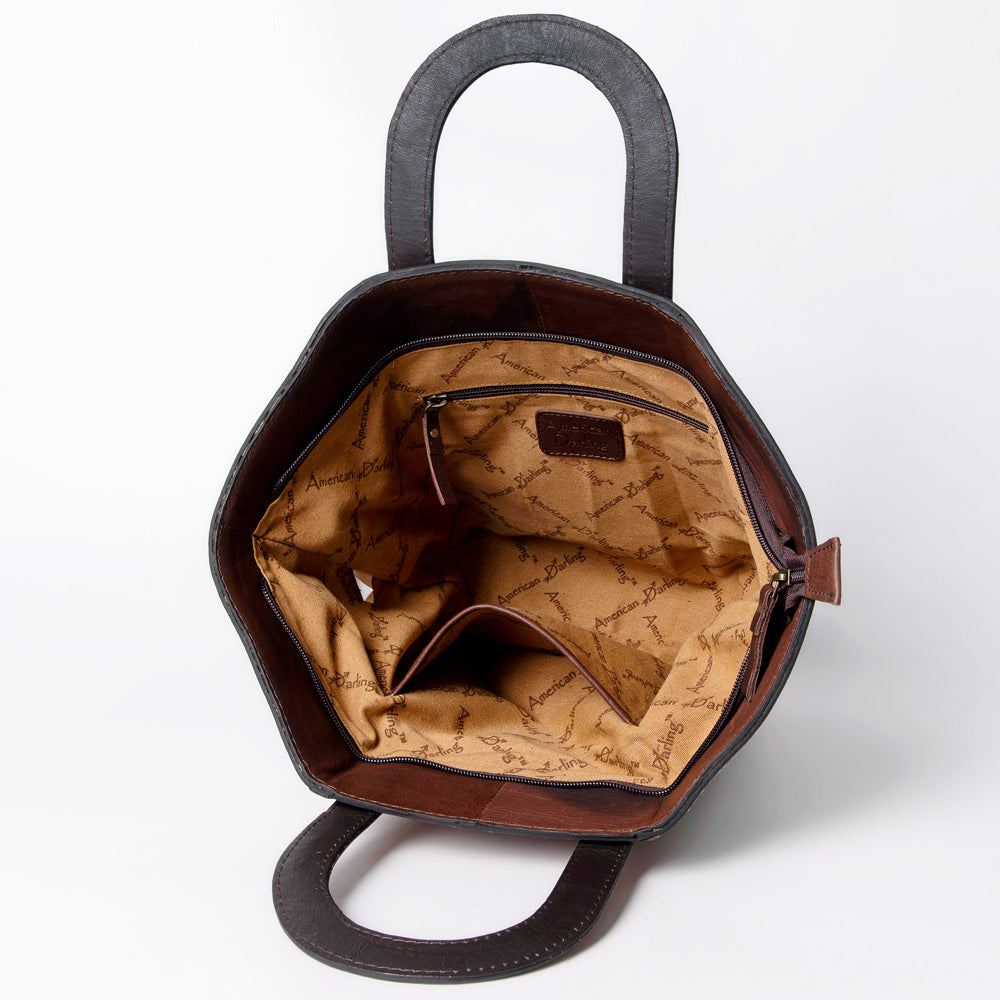 LC-ADBGA326 Hand-Tooled Leather & Cowhide Western Tote Bag Black & White
