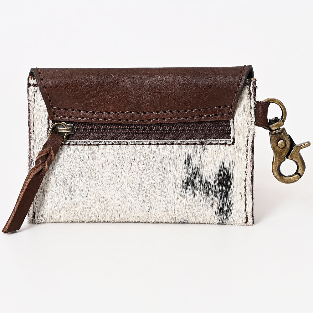 LC-ADBGA394 Hand-Tooled Leather Coin Purse with Hair-On Hide & Floral Design