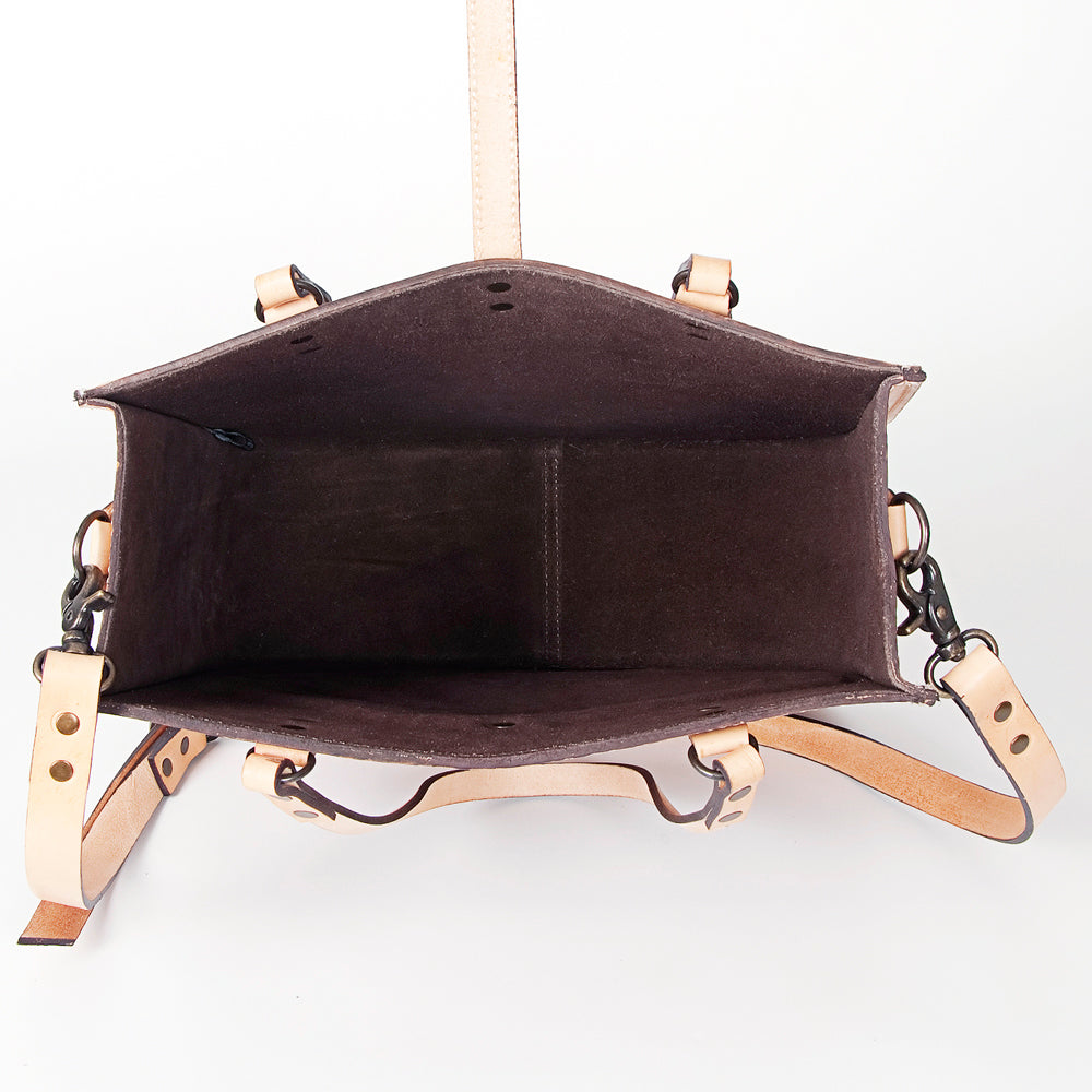 LC-ADBGH103A Tooled Leather Western Tote Bag - Floral Hand Tooling with Saddle Blanket Inlay