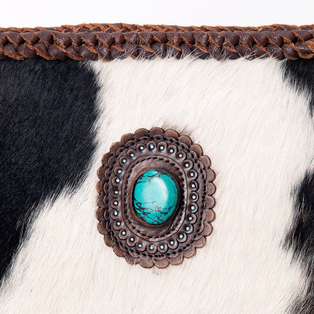 LC-ADBGM318 Cowhide Leather Tote with Turquoise Concho and Fringe - Western Braided Strap Bag