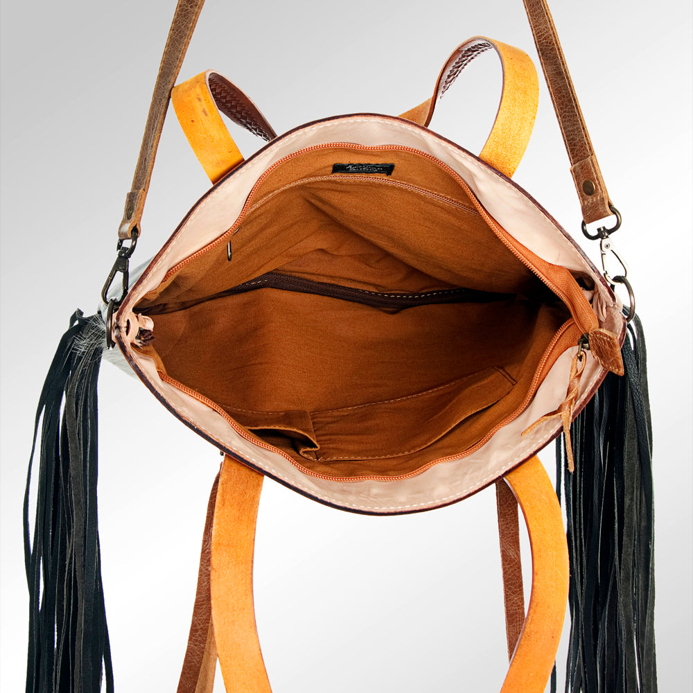 The handpicked cowhide hair-on genuine leather not only adds a soft and tactile element but also serves as an embellishment, enhancing its overall western appearance.