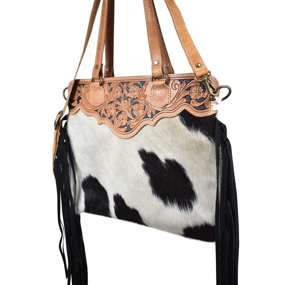 The handpicked cowhide hair-on genuine leather not only adds a soft and tactile element but also serves as an embellishment, enhancing its overall western appearance.