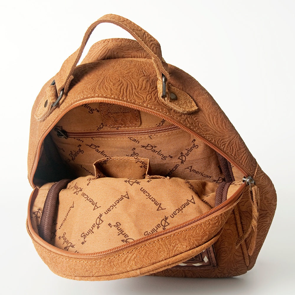ADBGS156 Embossed Western Backpack with Hand-Tooled Floral Leather Pocket
