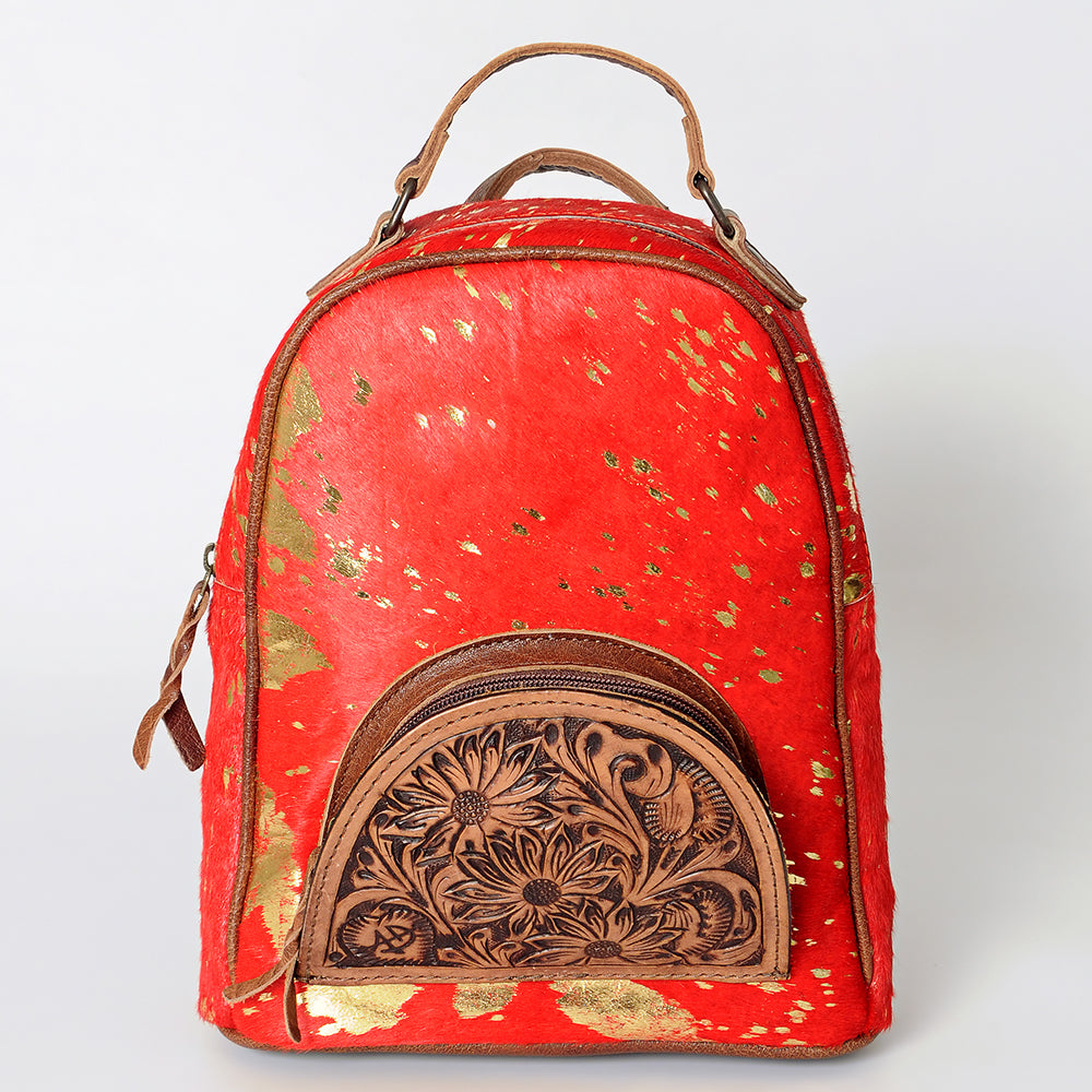 ADBGS156 Natural Cowhide Leather Backpack with Hand-Tooled Floral Pocket - Western Style