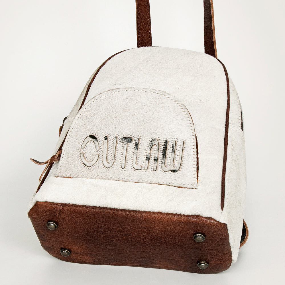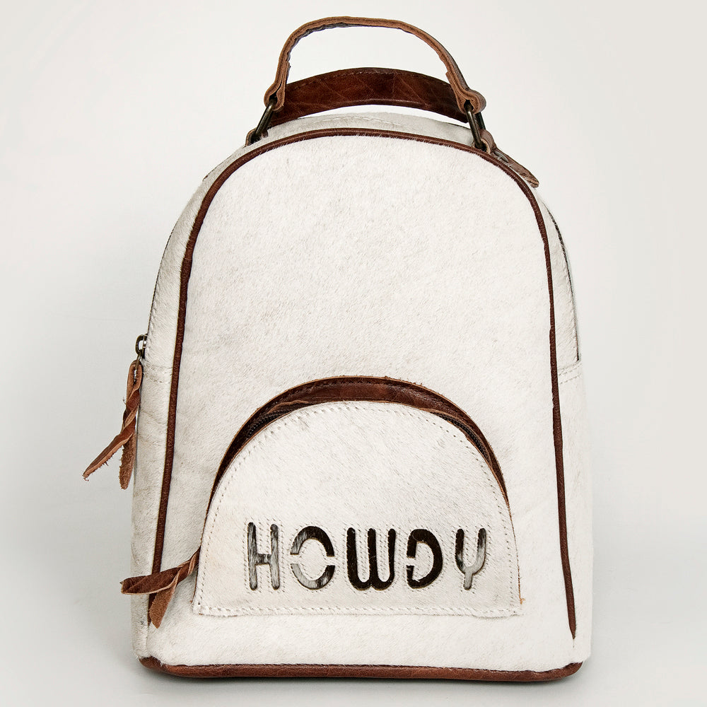 ADBGS156 White Cowhide Leather Backpack with Bold Inlay - Western Cowgirl Classic