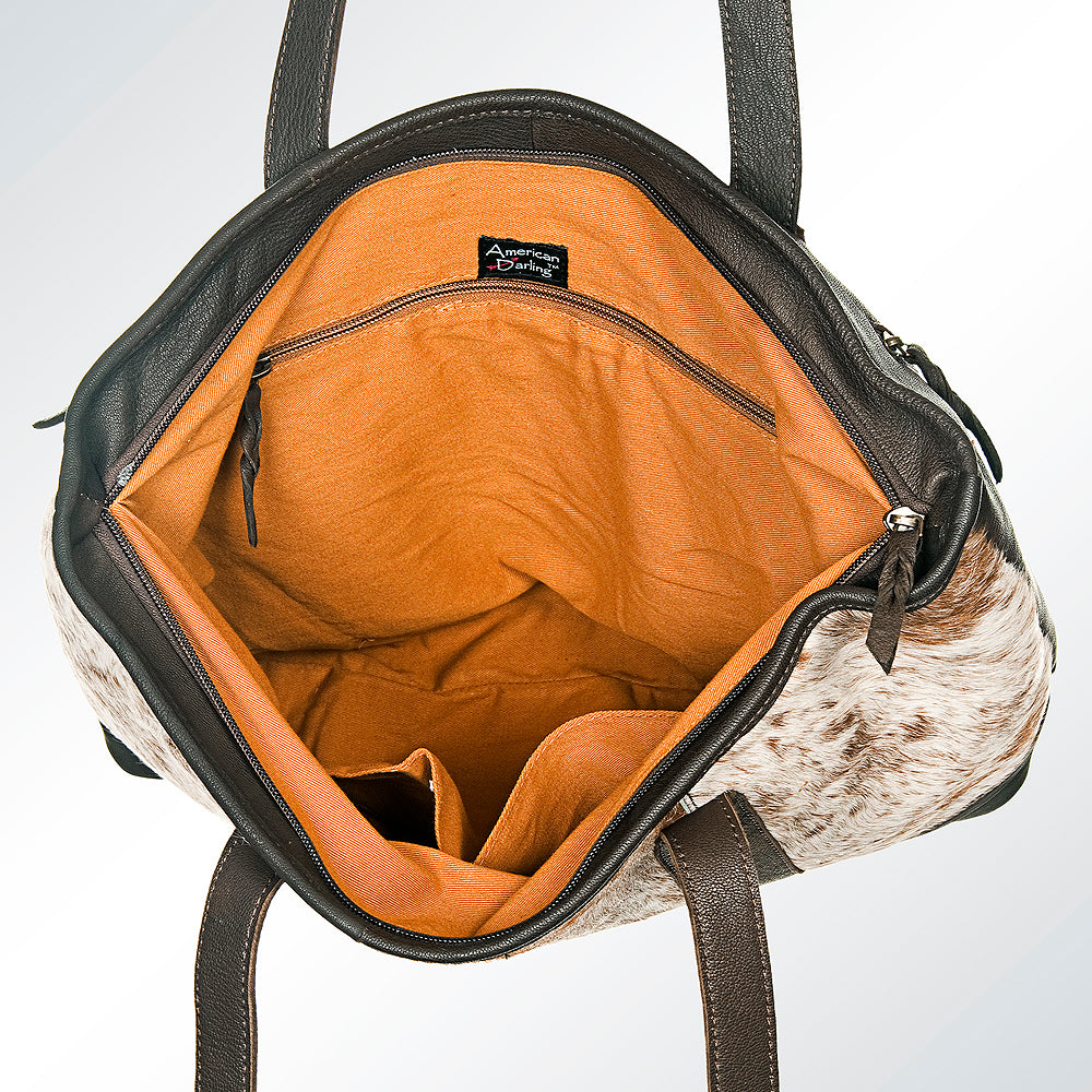 LC-ADBGS176DTAW Cowhide Leather Tote Bag - Brown & White Hair-On Western Shoulder Bag