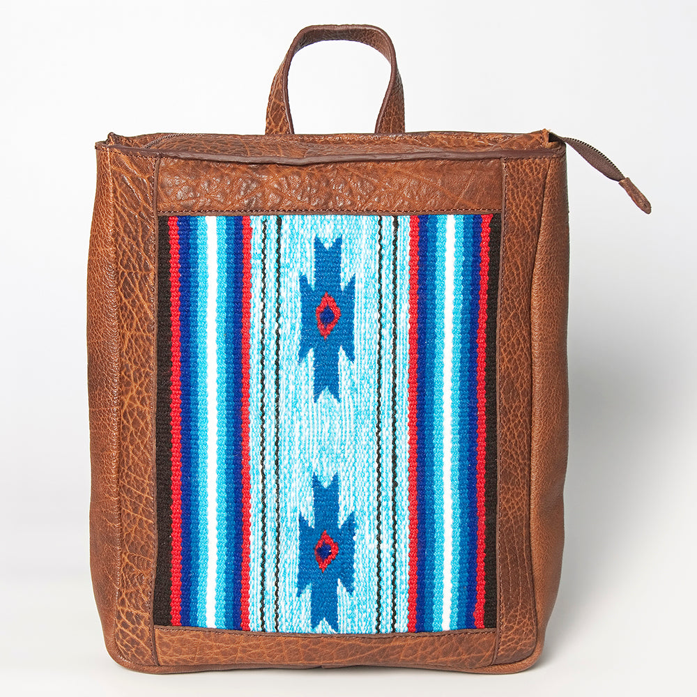 LC-ADBGZ307A Southwestern Wool & Leather Backpack - Turquoise, Blue, and Red Tribal Weave