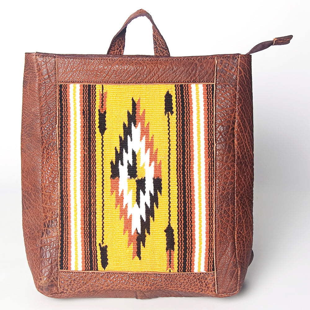 LC-ADBGZ307B Handmade Leather Backpack with Yellow Southwestern Wool Panel - Tribal Aztec Design