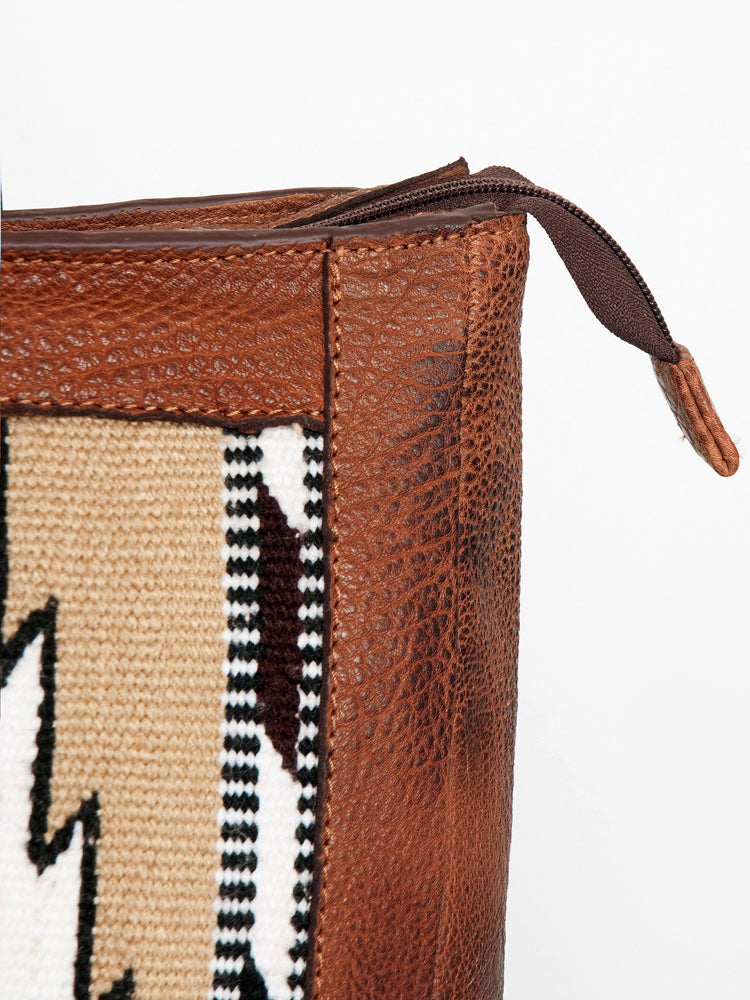 Showcase your Western roots with this handcrafted leather backpack featuring a dynamic tribal wool panel. The front design bursts with a bold combination of rust orange, white, black, and tan in a classic Aztec lightning pattern. Framed in genuine full-grain leather with a rich, rugged finish, this backpack is the perfect companion for day trips, rodeos, and everyday use.