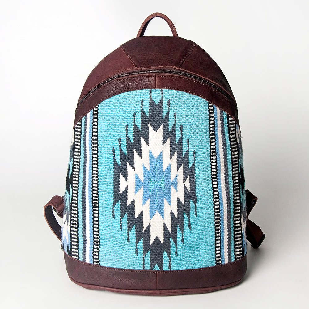 LC-ADBGZ376A Turquoise Southwestern Wool & Maroon Leather Backpack - Curved Body Western Bag