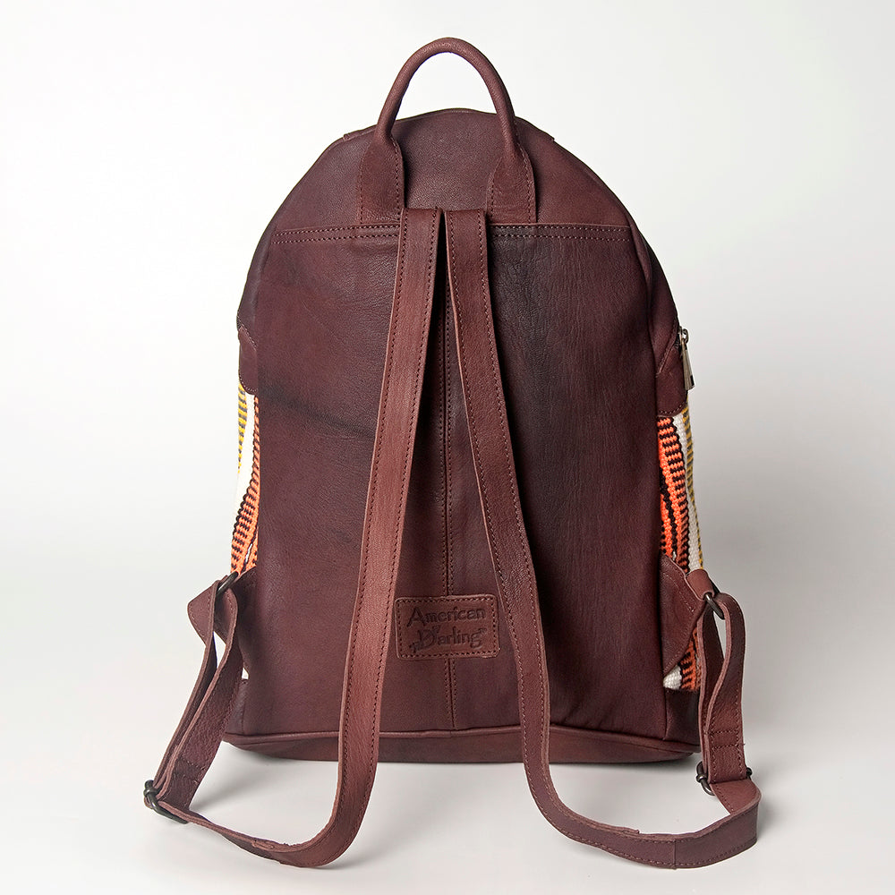 LC-ADBGZ376C Orange Southwestern Wool & Maroon Leather Backpack - Curved Body Tribal Daypack
