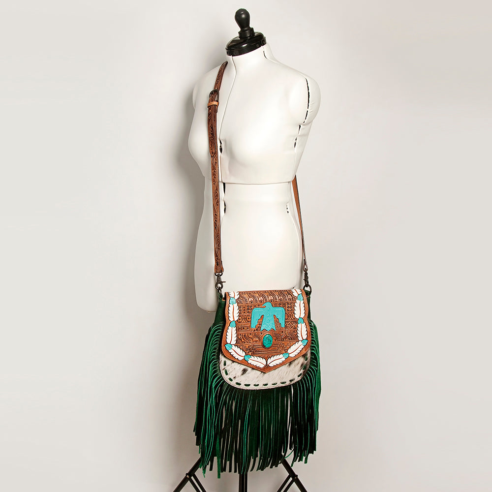 The handpicked cowhide hair-on genuine leather not only adds a soft and tactile element but also serves as an embellishment, enhancing its overall western appearance.