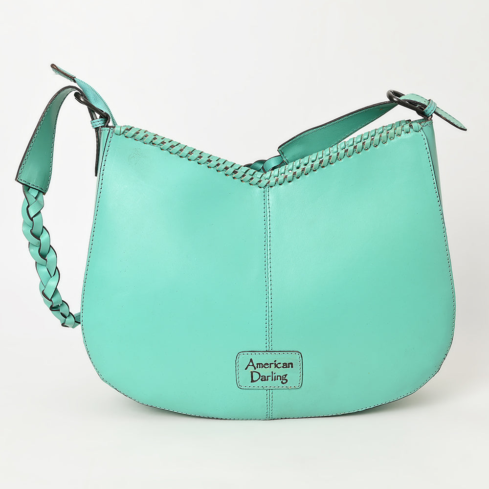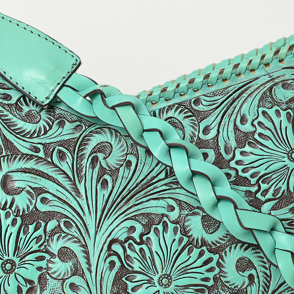 LC-ADBGZ795 Hand-Tooled Western Leather Hobo Bag - Floral Carving with Braided Strap