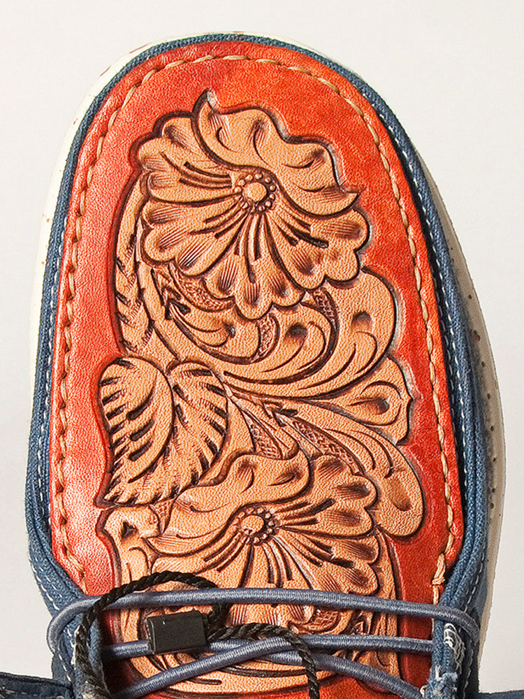 Detailed Hand tooled, carved and finally antique hand finished vegetable tanned American Cowhide Leather, exquisitely done by the finest artists and craftsmen in the country.