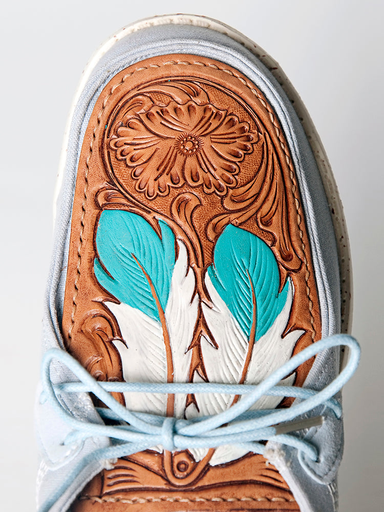 Detailed Hand tooled, carved and finally antique hand finished vegetable tanned American Cowhide Leather, exquisitely done by the finest artists and craftsmen in the country.