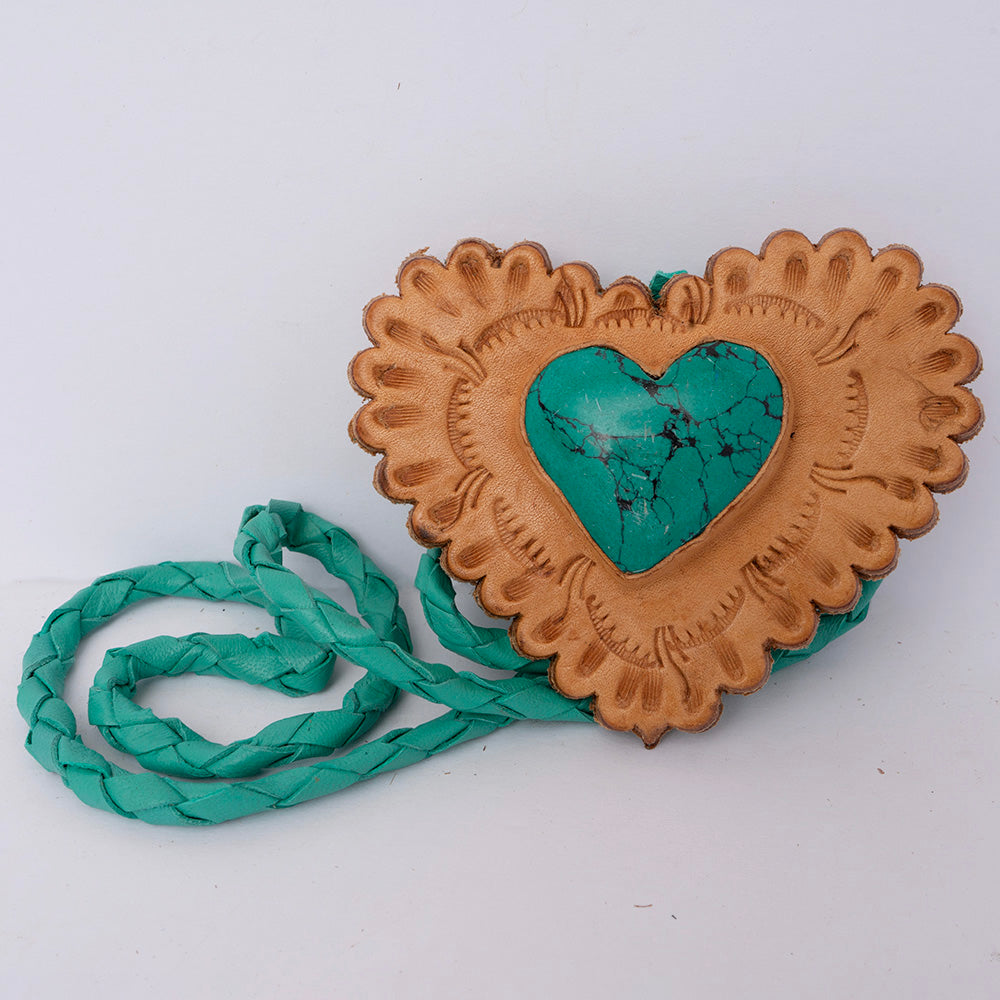 Gorgeous hand tooled Genuine Cowhide vegetable tanned leather concho with turquoise stone.