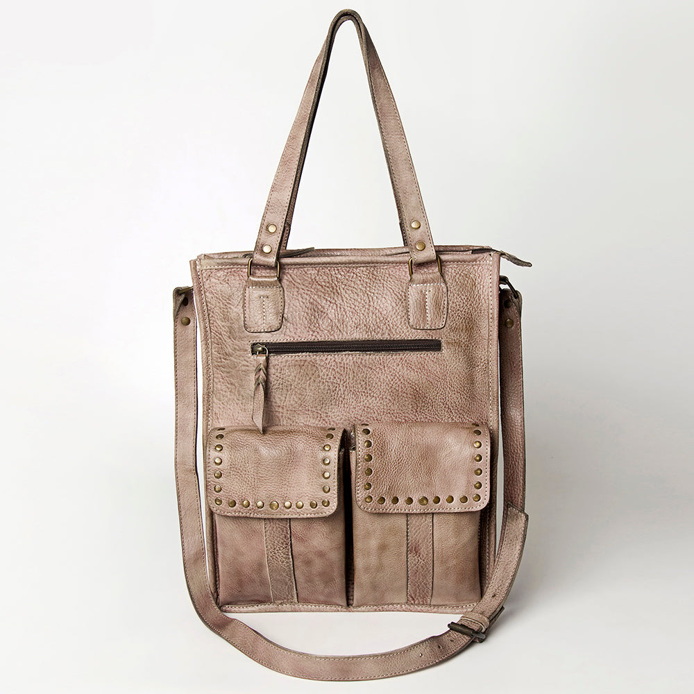 Enhanced with decorative rivets, adding a touch of rugged elegance.