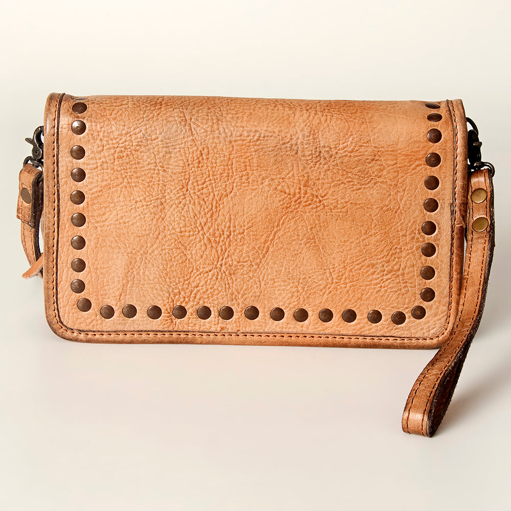 Enhanced with decorative rivets, adding a touch of rugged elegance.