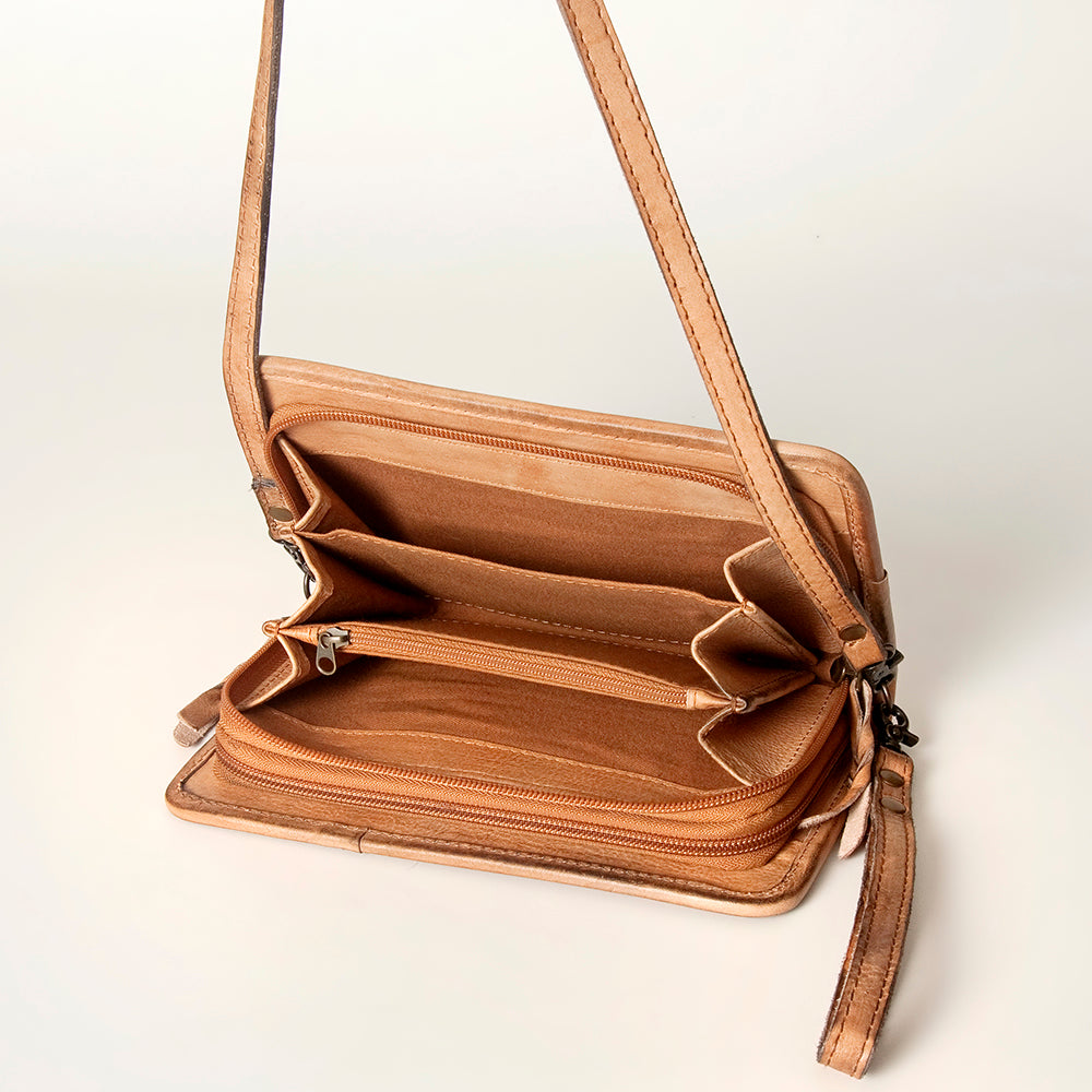 Adjustable genuine leather shoulder strap.