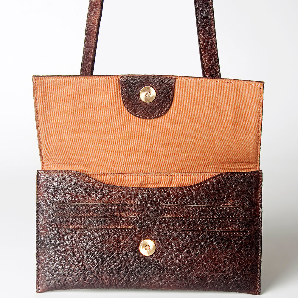 Adjustable genuine leather shoulder strap.
