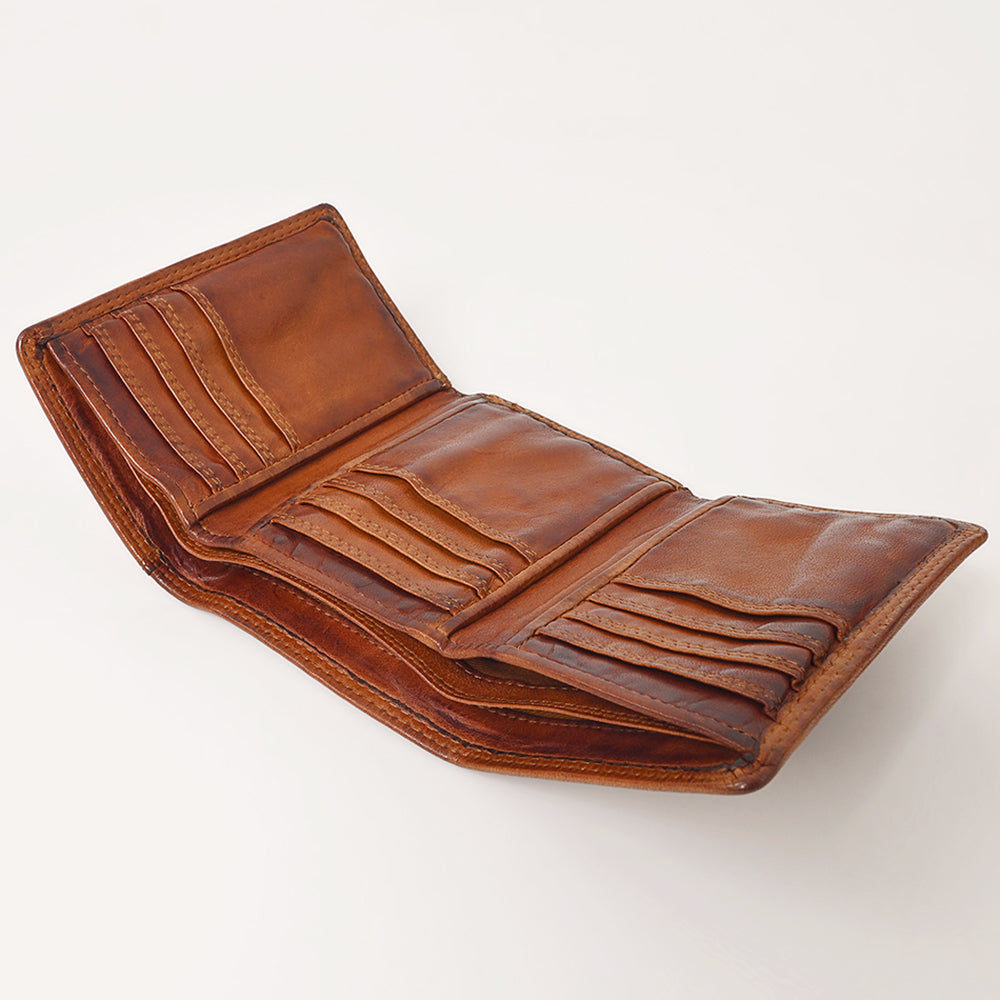 The Spaghetti Western creations undergo a meticulous hand-dyeing process utilizing an individualized method. Each creation is meticulously guided through multiple stages, featuring a proprietary approach involving hand dyeing, buffing, brushing, and finishing. This process demands significant time and attention to detail. Nonetheless, the outcome is a captivating blend of vintage and patina aesthetics, ensuring that each creation possesses its own unique and exclusive appearance.